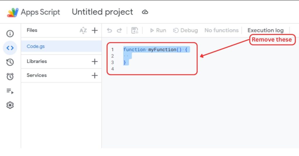 Now, remove the existing code and paste the Apps Script code that you copied.