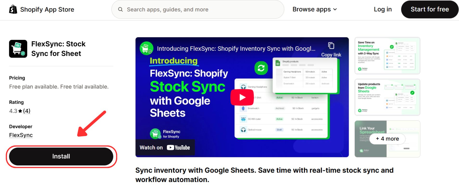 Select the FlexSync app from the search results and click on Install.