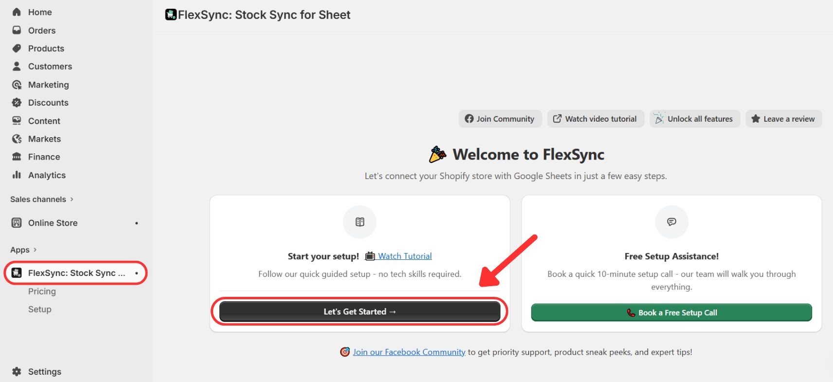 Now click on the Let’s Get Started button. Follow the on-screen instructions to sync your Shopify Store with Google Sheets.