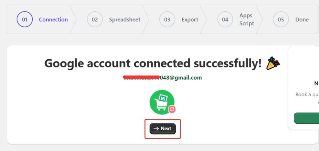Select your Google Account & provide all the necessary permissions. After successfully connecting your account, Hit Next.