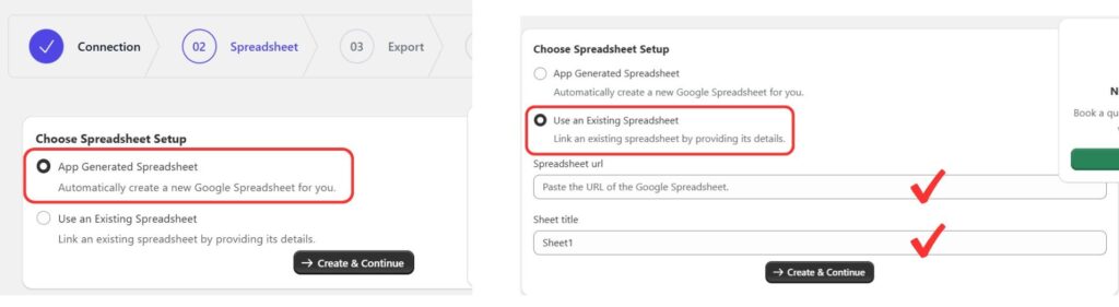 Click Create & Continue to link the spreadsheet and proceed to export your Shopify products.