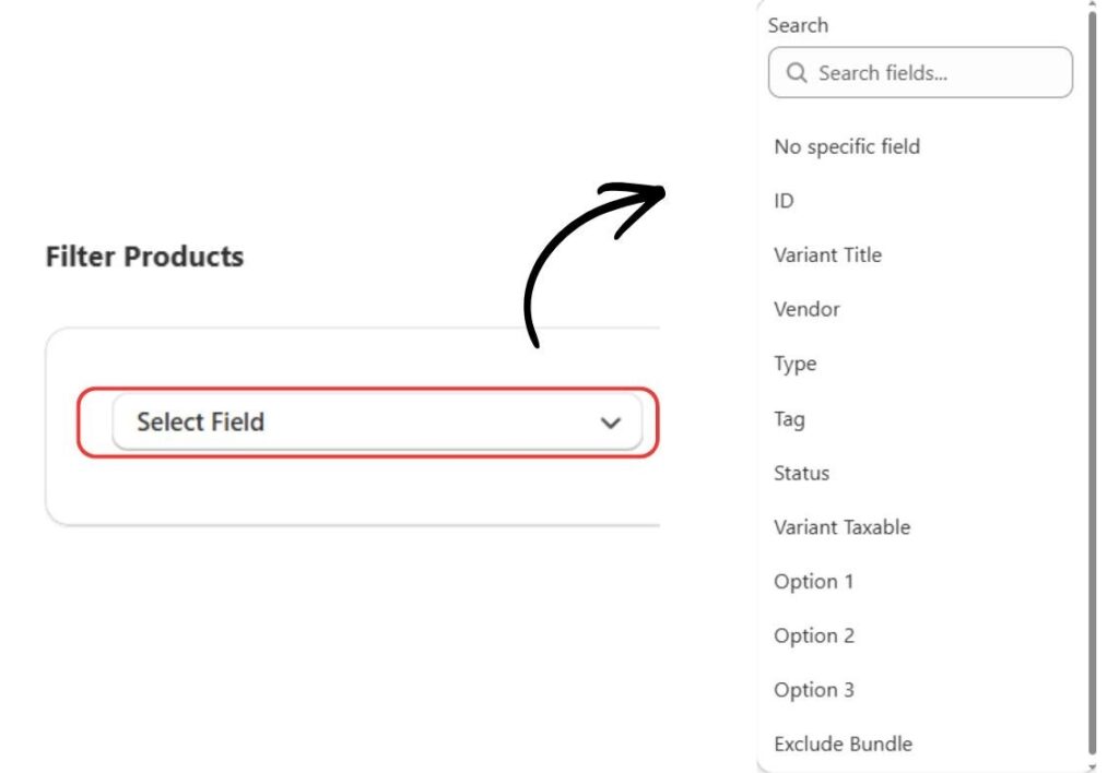Only products or variants matching the Field + Operator + Value rule will be shown.