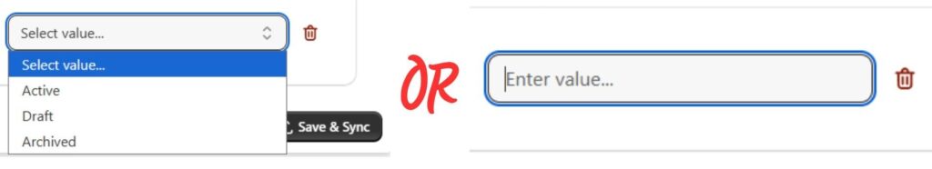 The value field is where you enter or select the condition to match.