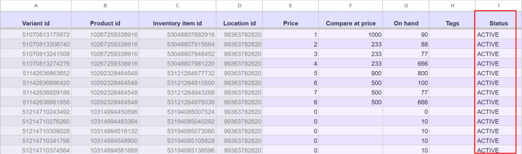 - Only active products appear in Google Sheets