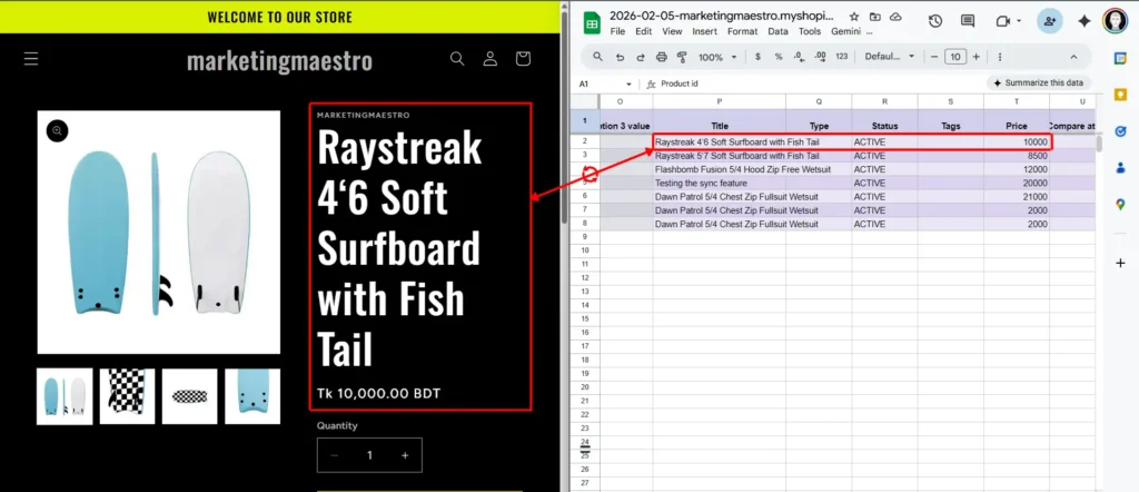 You can also test the reverse direction by updating a product in Shopify and checking if the change reflects in your Google Sheet. This confirms both directions of the sync are functioning properly.